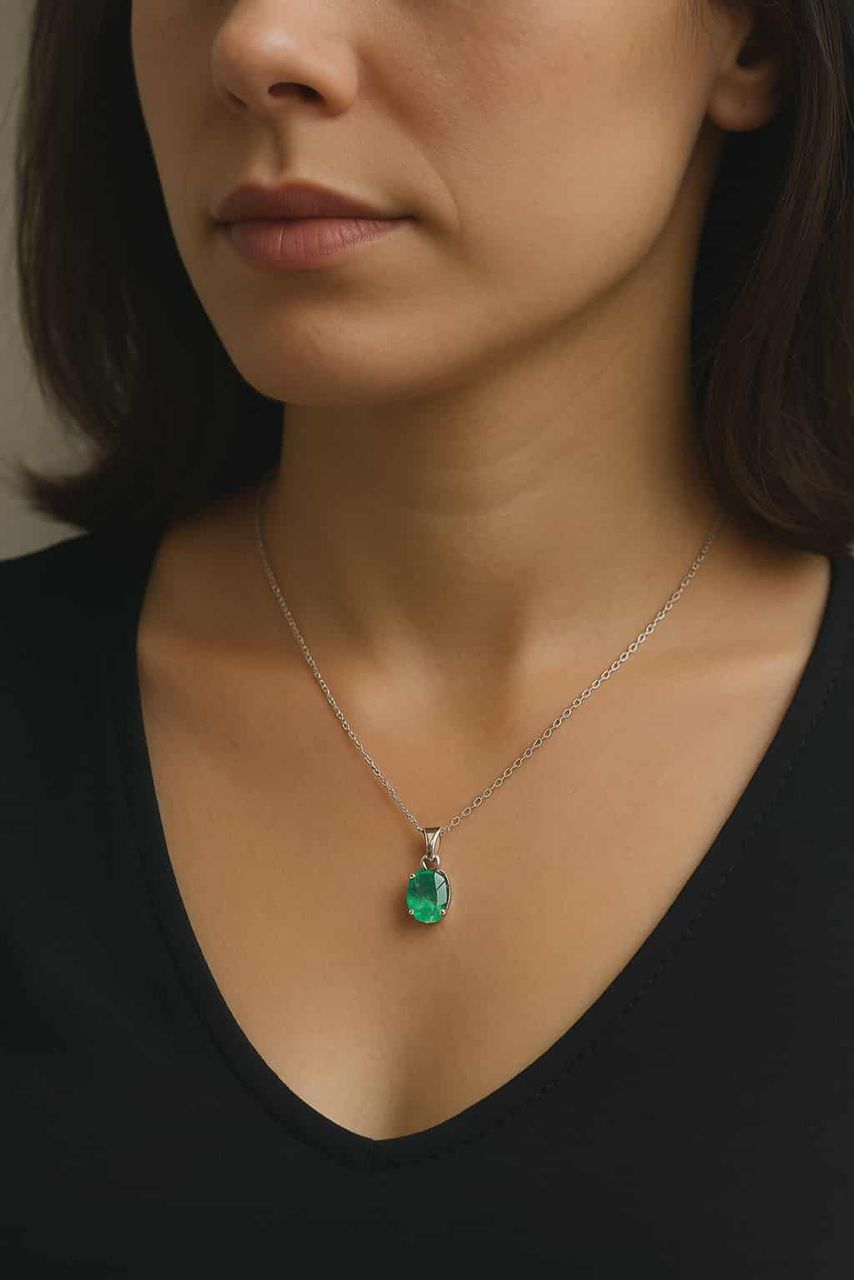 💎 Pendentif en Argent avec Émeraude Naturelle – 0,75 carat 💎