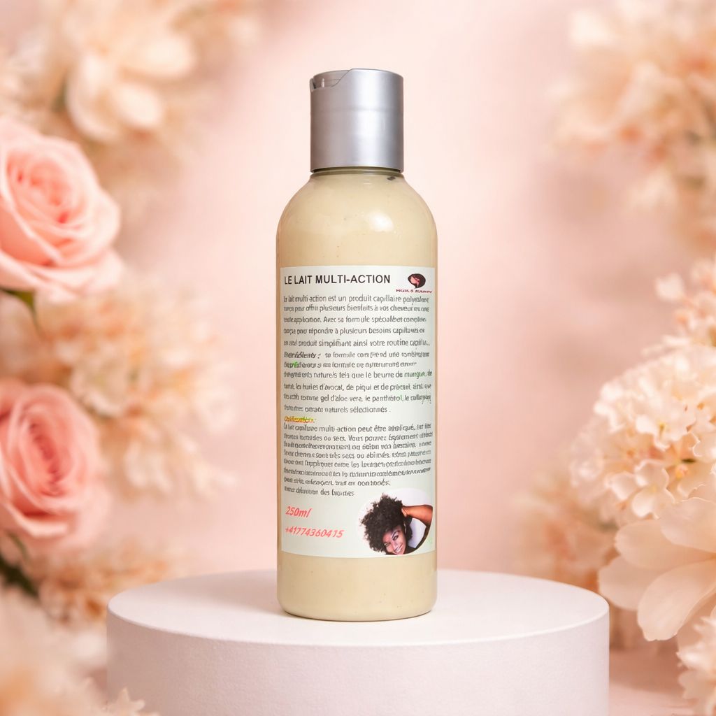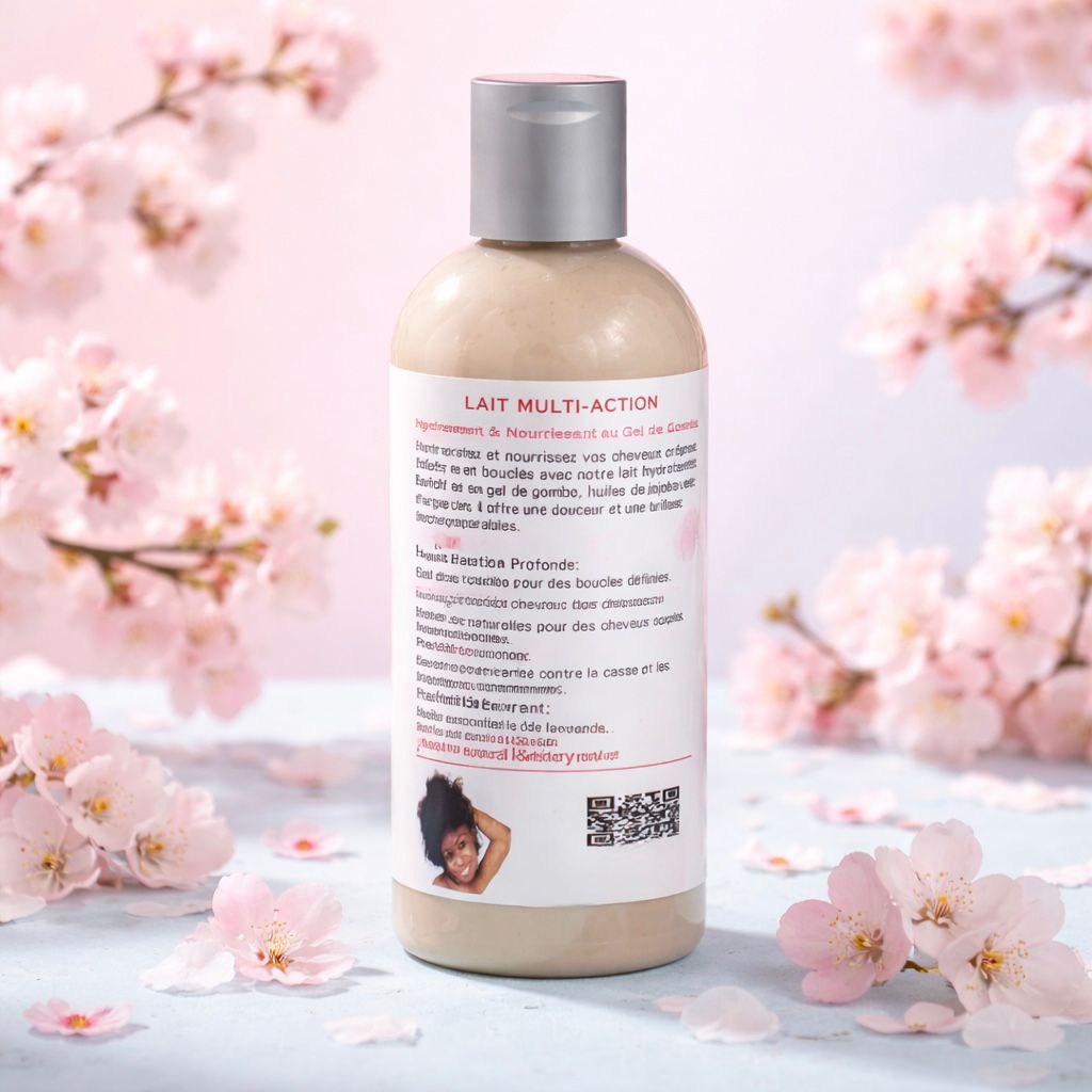Découvrez notre lait hydratant spécialement conçu pour les cheveux crépus, frisés et bouclés. Formulé avec soin, il allie les bienfaits du gel de gombo et de riches huiles naturelles pour offrir une hydratation intense et une douceur incomparable.