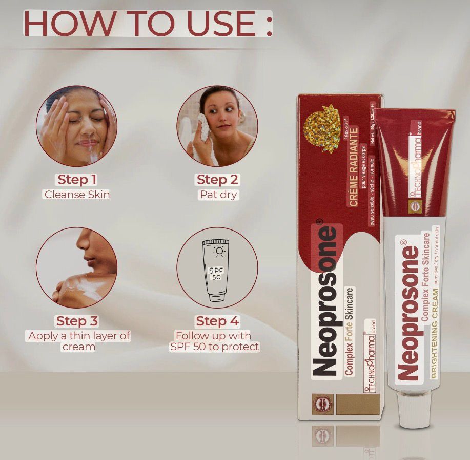 Le gel fort Neoprosone Technomed est un produit de soin éclaircissant pour la peau, conçu pour atténuer les taches brunes, l’hyperpigmentation et unifier le teint. Il contient généralement un complexe d’alpha-arbutine, bien que certaines versions puissent contenir des ingrédients plus puissants comme le clobétasol.