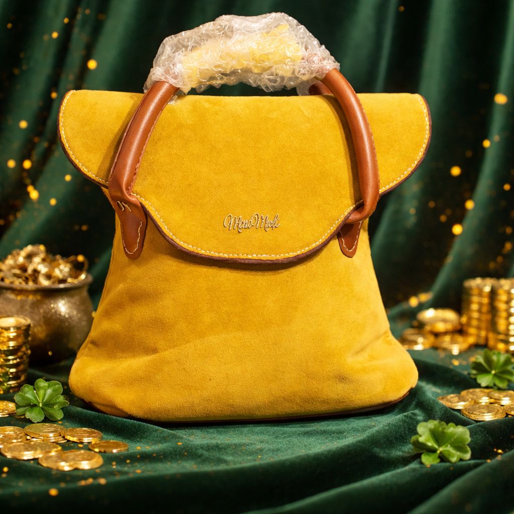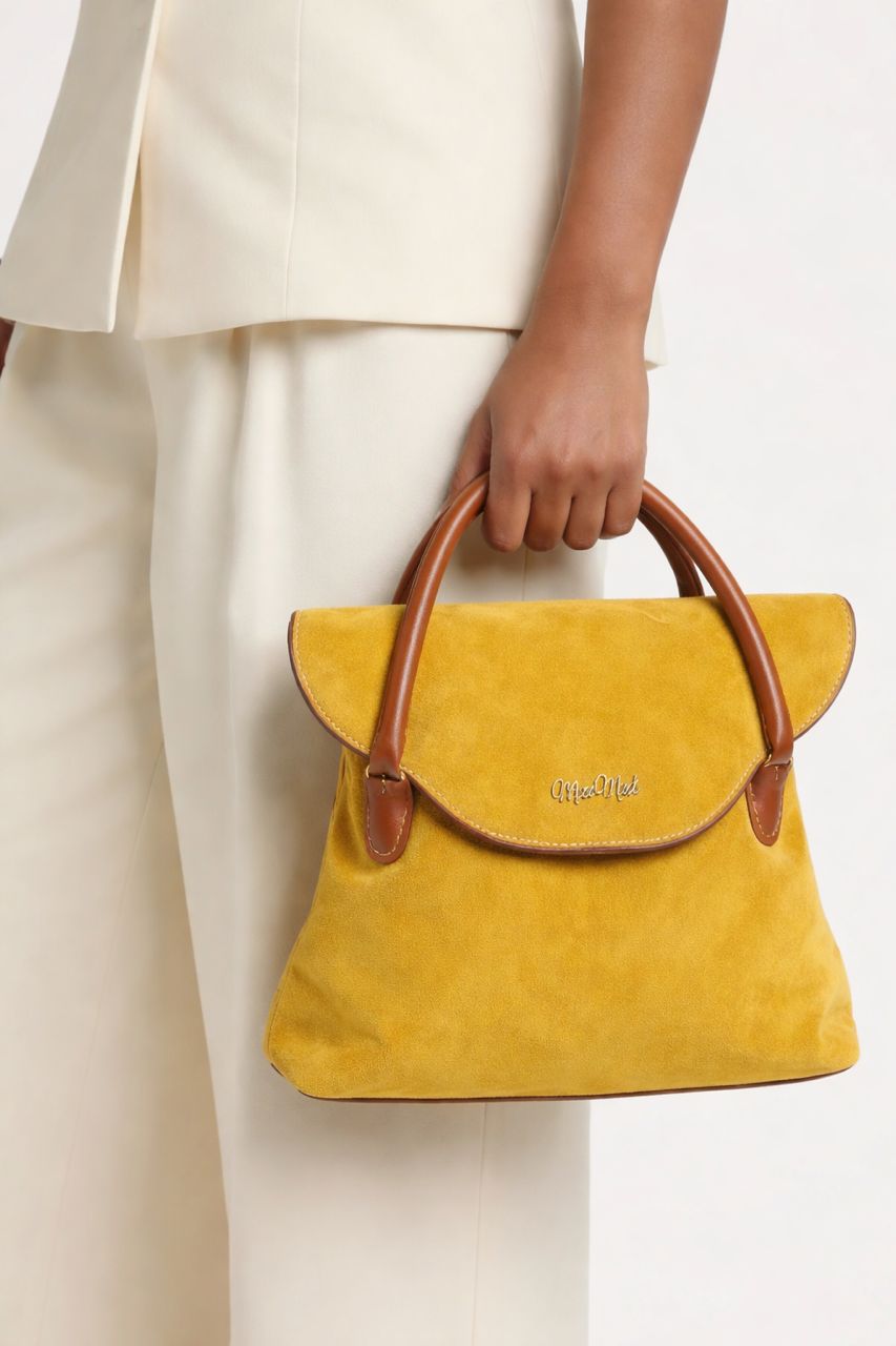 Sa couleur jaune moutarde vibrante, associée aux poignées en cuir brun, apporte un contraste élégant et moderne, idéal pour sublimer toutes vos tenues, du quotidien aux occasions spéciales.